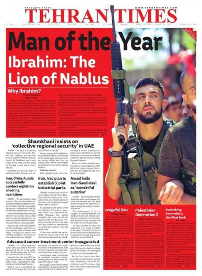 اختارت صحيفة "طهران تايمز" الإيرانية الشهيد إبراهيم النابلسي رجل العام تحت عنوان "إبراهيم، أسد نابلس".