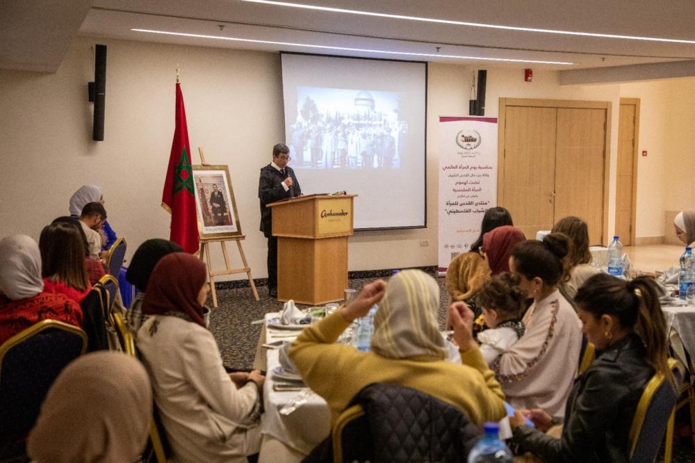 وفي ختام هذا الحفل رفعت النساء المشاركات برقية شكر وثناء للعاهل المغربي الملك محمد السادس، تلتها الدكتورة صفاء ناصر الدين أعربن فيها عن "أصدق عبارات الشكر ووافر الامتنان لكل ما تبذلونه من جهود نبيلة لدعم القدس وصمود أهلها".