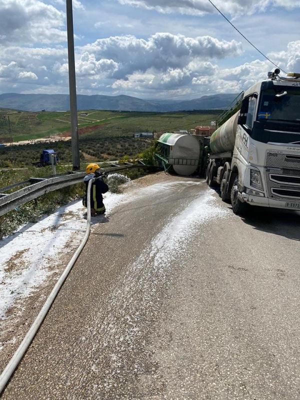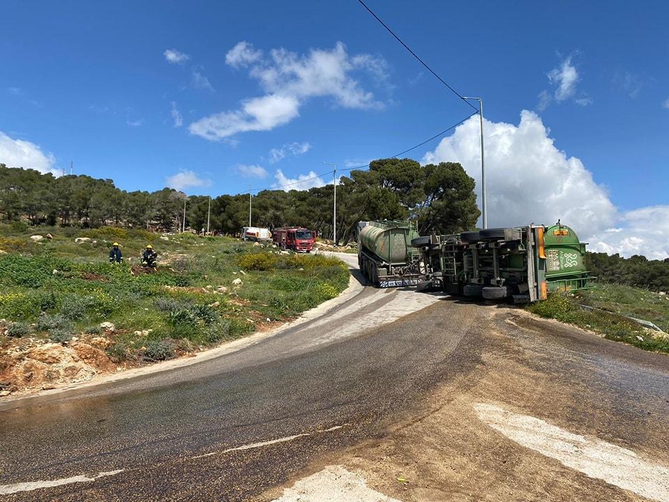 انقلاب صهريج وقود في طوباس وتسرب كمية كبيرة من الوقود
