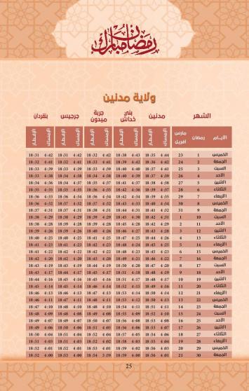 إمساكية شهر رمضان 2023 في ولاية مدنين
