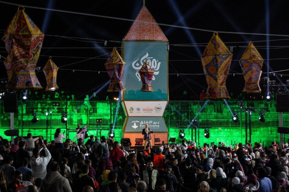 واحتفل المشاركون بإضاءة الفانوس الضخم الذي يبلغ ارتفاعه أكثر من 9 أمتار، في مقر البرج فيما أحيا المنشدون أمسية رمضانية تخللتها الأناشيد الدينية.