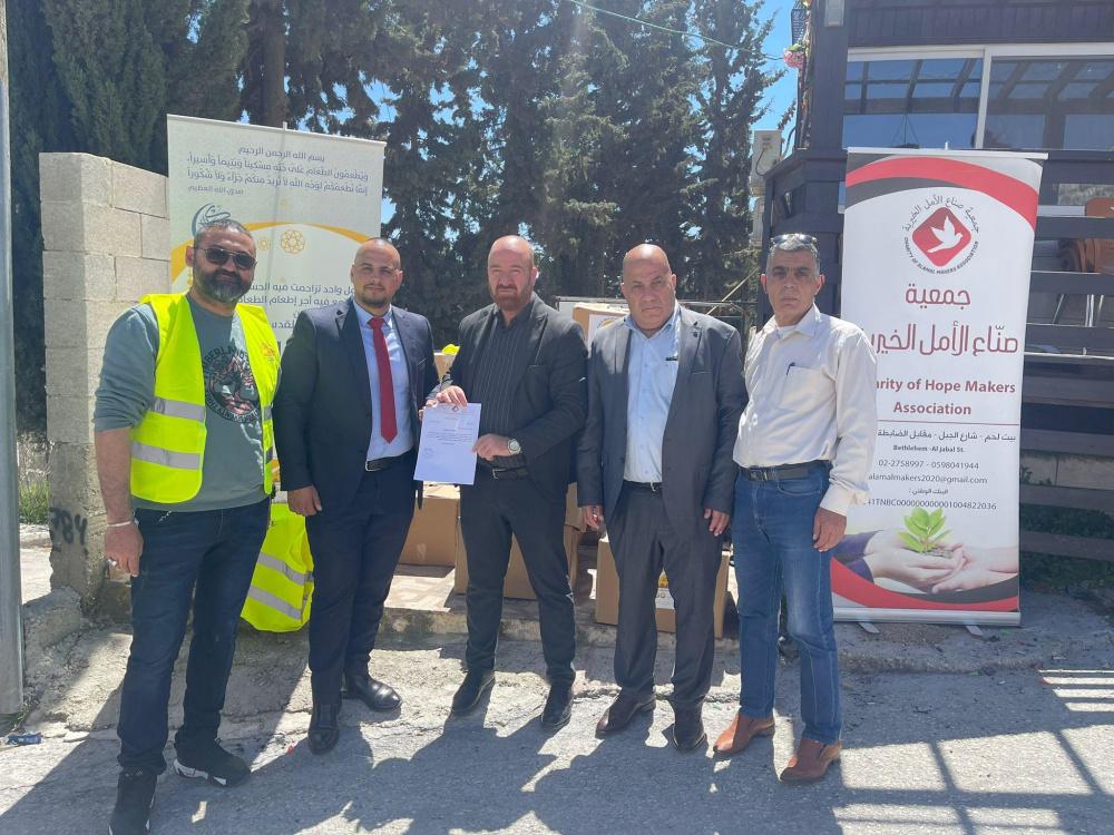 أطلقت شركة كهرباء محافظة القدس حملة رمضان الخير 2023 من خلال تسليم الدفعة الاولى من الطرود الغذائية لجمعية صناع الأمل الخيرية في محافظة بيت لحم بحضور مدير العلاقات العامة الخارجية والبروتوكول السيد فراس جبران في شركة كهرباء محافظة القدس ومدير جمعية صناع الامل السيد عماد ابو نصار وأعضاء مجلس ادارة الجمعية.