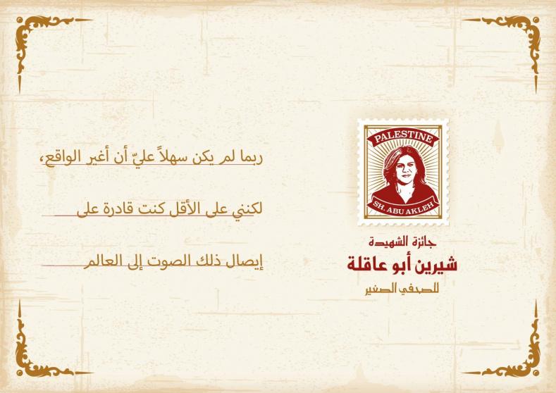 وأوضحت الوزارة أن هذه الجائزة تم استحداثها والإعلان عنها العام الماضي تكريماً للشهيدة الراحلة وإرثها الإعلامي، وتجسيداً لتوجيهات الوزير أ.د. مروان عورتاني وحرصه على جعل الطلبة مواطنين "صغار" متفاعلين مع القضايا الإنسانية العادلة، وتوظيف الإعلام لنقل همومهم والتحديات التي يواجهونها ومدارسهم إلى العالم.