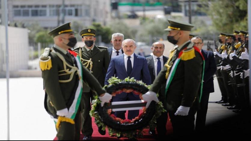 كما وضع رئيس الوزراء محمد اشتية وعدد من الوزراء، إكليلا من الزهور على ضريح الرئيس الشهيد عرفات، بمقر الرئاسة في مدينة رام الله، لمناسبة عيد الفطر.