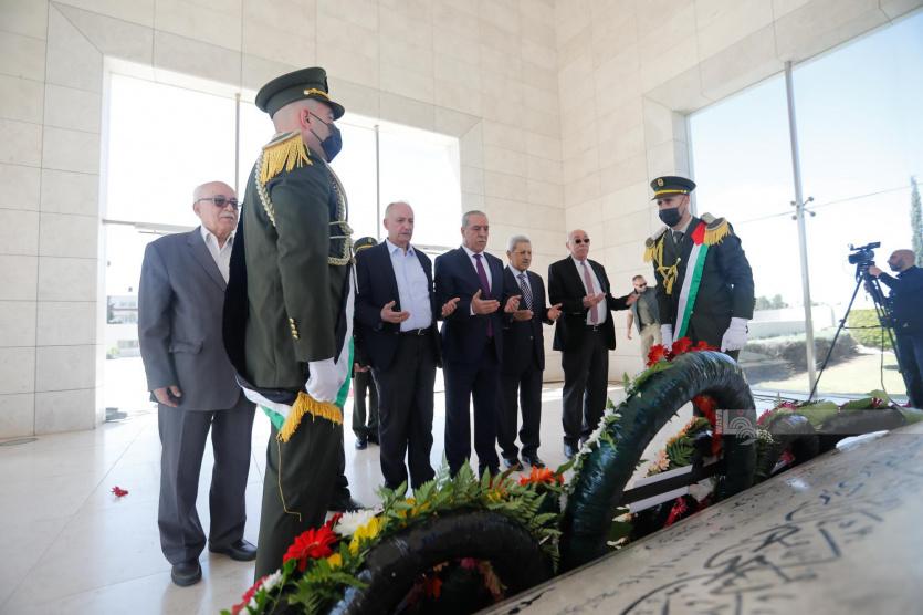 بالصور: القيادة الفلسطينية تضع أكاليل الزهور على ضريح ياسر عرفات