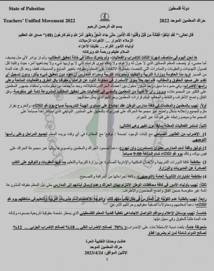 وفيما يلي نص بيان حراك المعلمين الموحد: