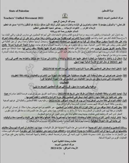 وفيما يلي نص بيان حراك المعلمين كما وصل "رايـــة":