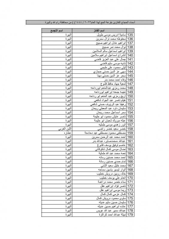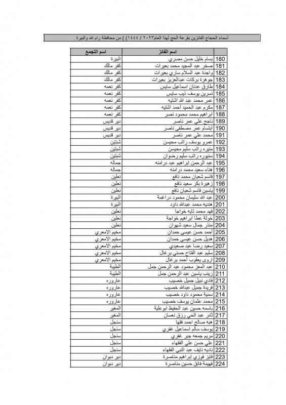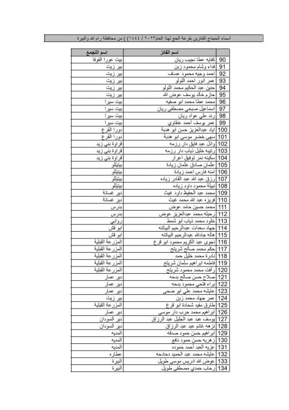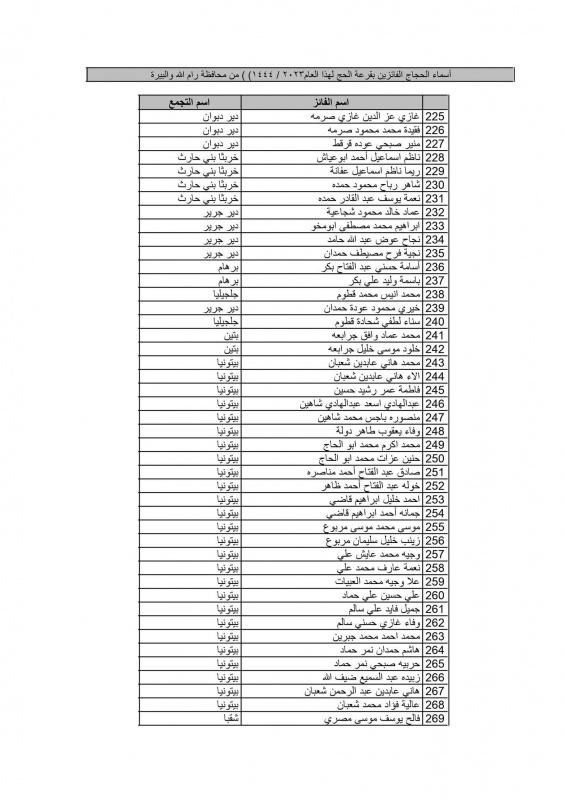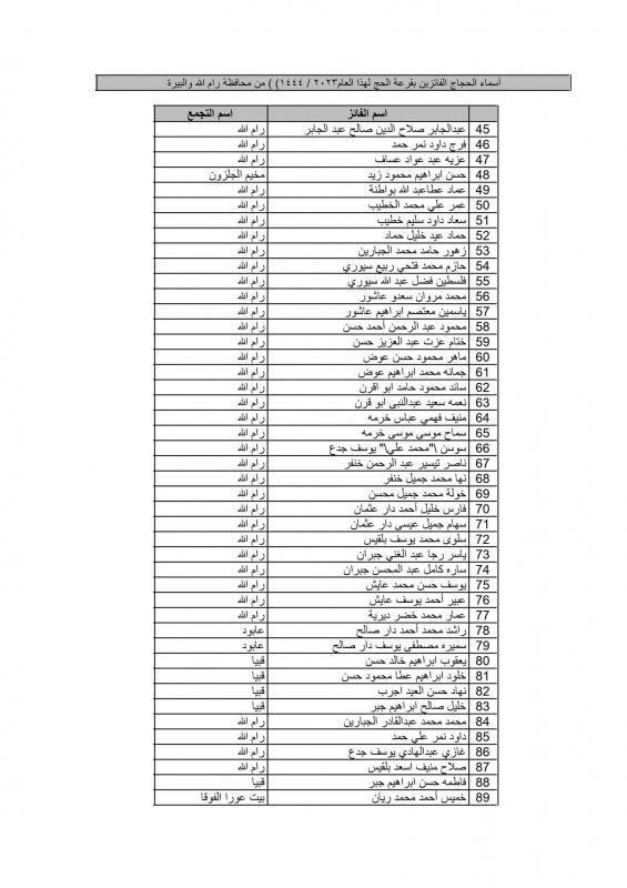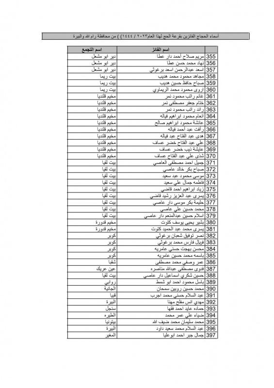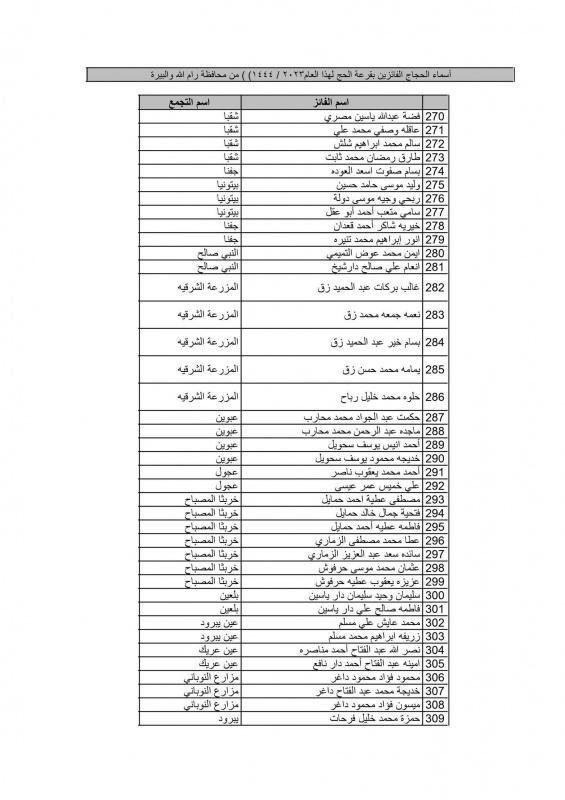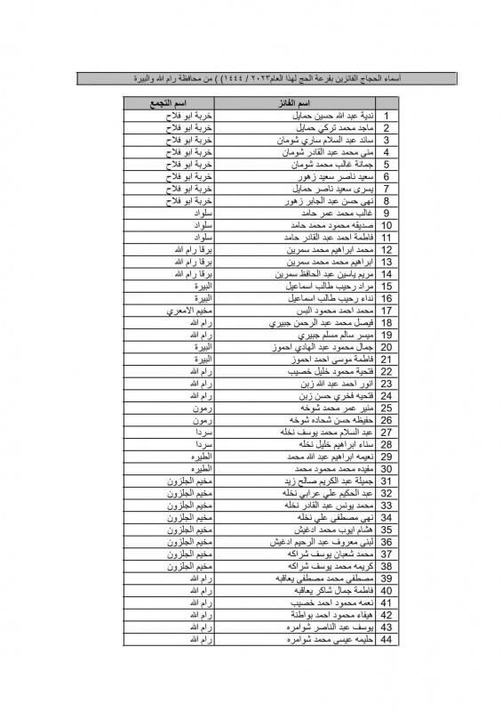 أسماء الحجاج الفائزين بقرعة الحج لهذا العام2023 / 1444) ) من محافظة رام الله والبيرة