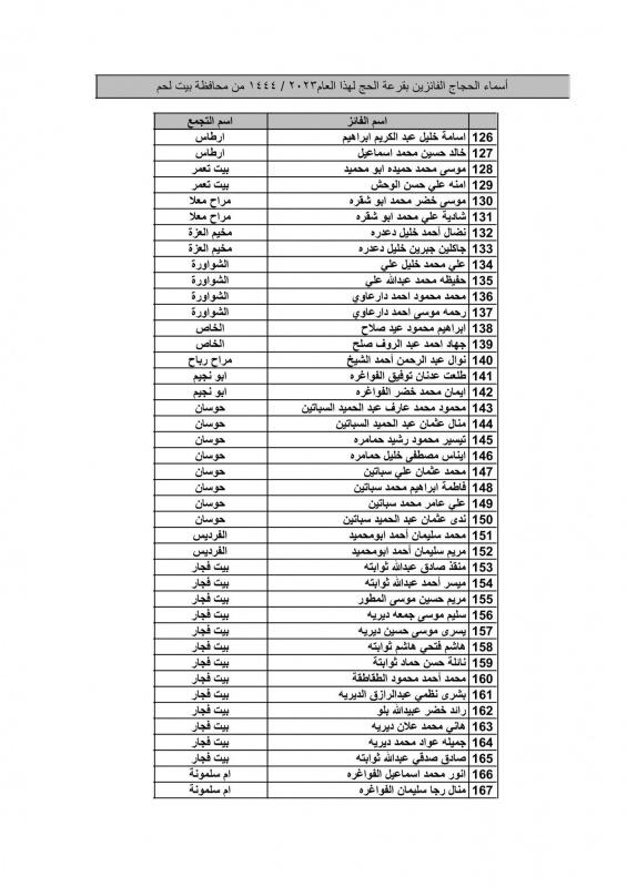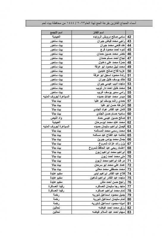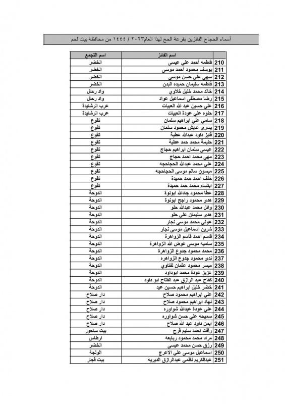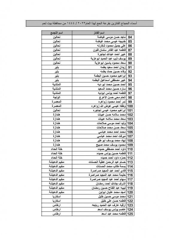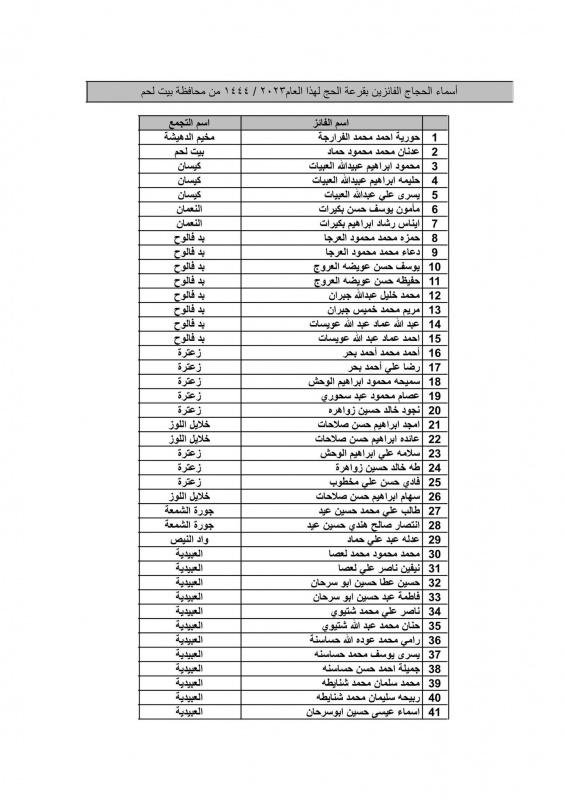 أسماء الحجاج الفائزين بقرعة الحج لهذا العام 2023 / 1444) ) من محافظة بيت لحم