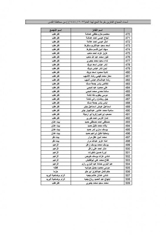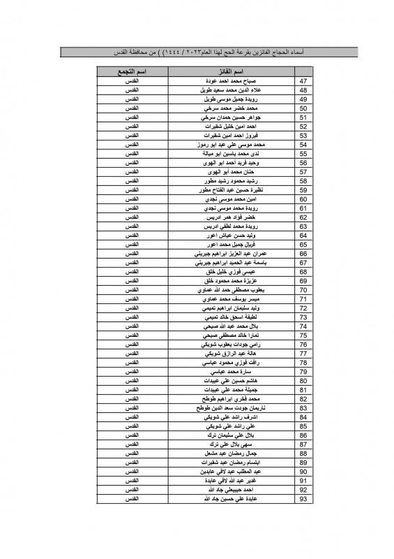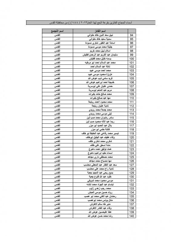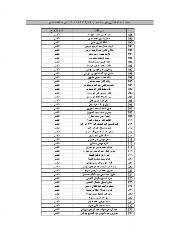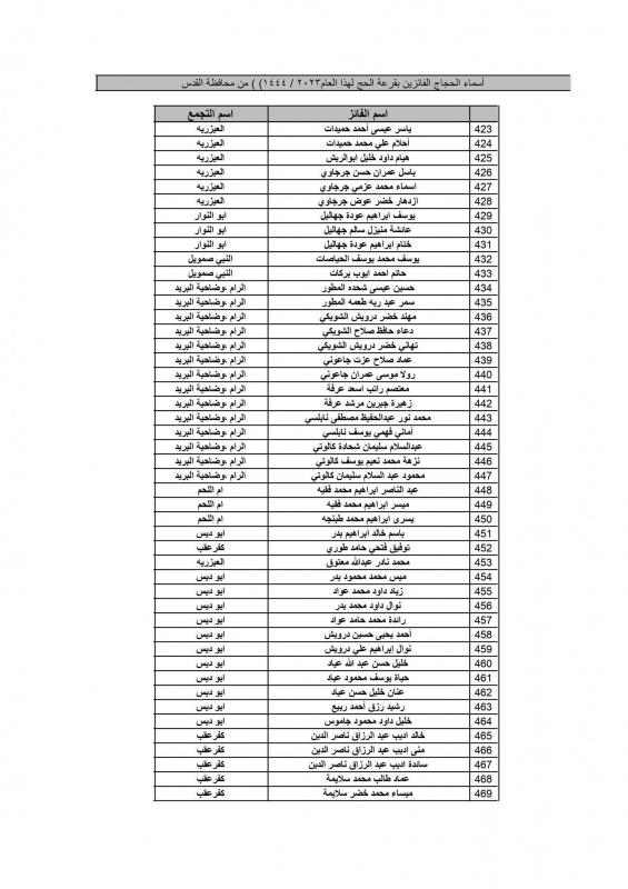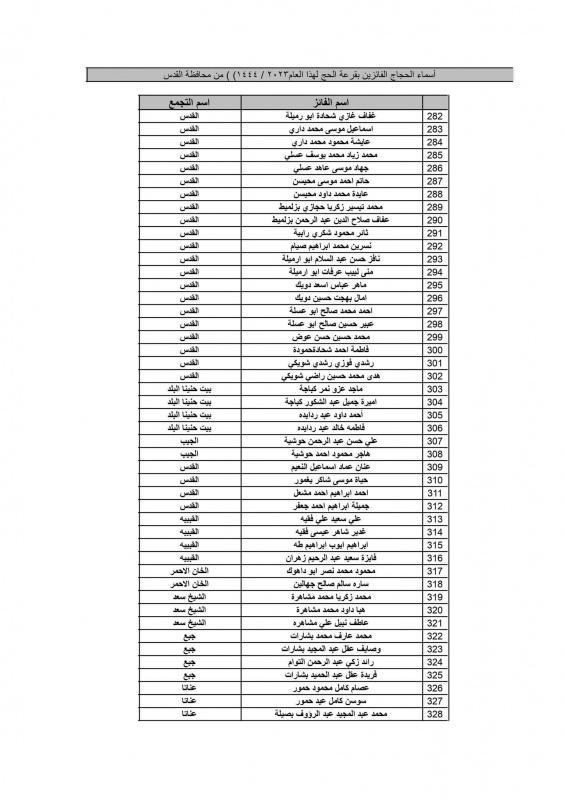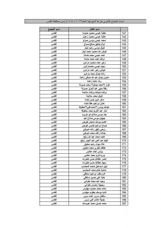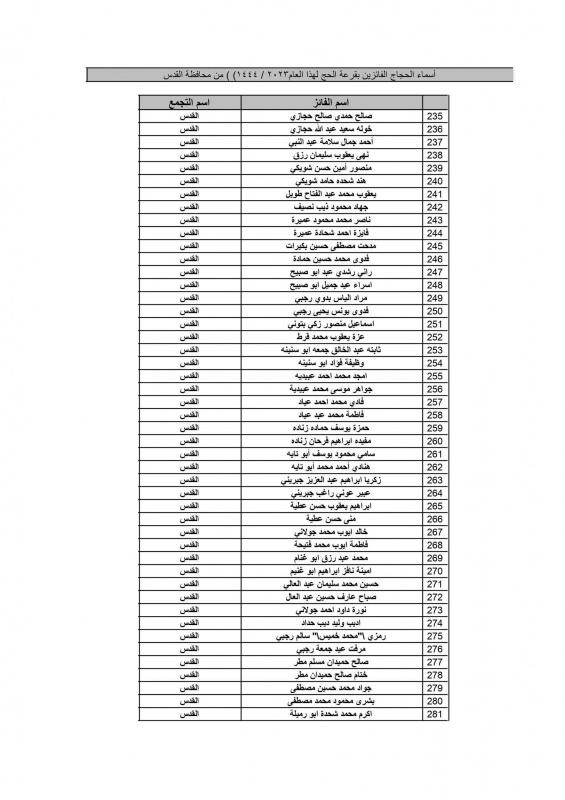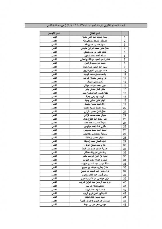 أسماء الحجاج الفائزين بقرعة الحج لهذا العام 2023 / 1444) ) من محافظة القدس