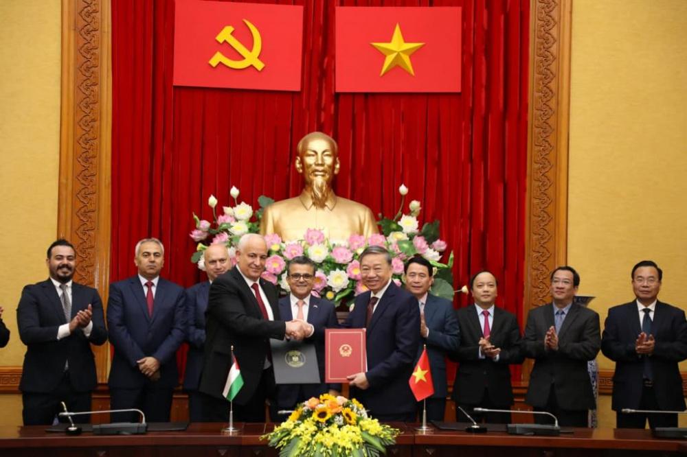 وقع وزير الداخلية اللواء زياد هب الريح مع نظيره الفيتنامي الفريق تو لام، اليوم الثلاثاء، مذكرة تفاهم للتعاون حول منع ومكافحة الجريمة، وذلك في مقر وزارة الأمن العام بالعاصمة هانوي بحضور سفير فلسطين لدى فيتنام وأعضاء الوفد الفلسطيني المرافق.