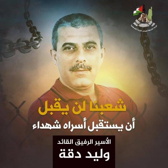 وكان مكتب إعلام الأسرى، حذر من تعرض الأسير وليد دقة لمحاولة اغتيال على غرار ما تعرض له الأسير الشهيد خضر عدنان في سجون الاحتلال، وذلك عقب تصريح لوزير ما يسمى الأمن القومي الإسرائيلي الفاشي إيتمار بن غفير والذي قال إن الأسير دقة "يجب أن ينهي حياته داخل السجن".