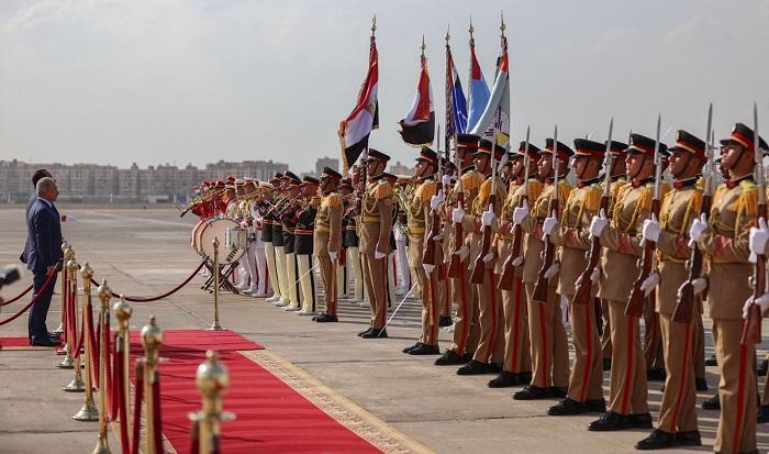 واستعرض رئيس الوزراء ونظيره المصري حرس الشرف الذي اصطف لتحيتهما، فيما عزف النشيدان الوطنيان الفلسطيني والمصري .