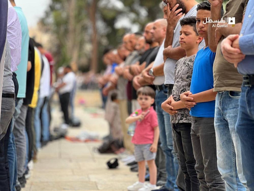 واكتظت ساحات المسجد الأقصى وباحاته بآلاف المصلين، الذين قدموا من محافظات الضفة بما فيها القدس المحتلة، وداخل أراضي العام 48.