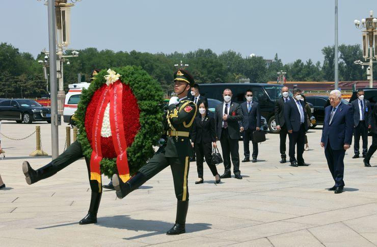 وفي ذات السياق، وضع الرئيس إكليلا من الزهور على النصب التذكاري لأبطال الشعب الصيني، وسط العاصمة بكين، والذي يخلد ذكرى من ضحَّوا بأرواحهم في سبيل استقلال الصين.