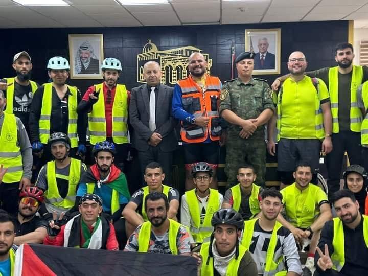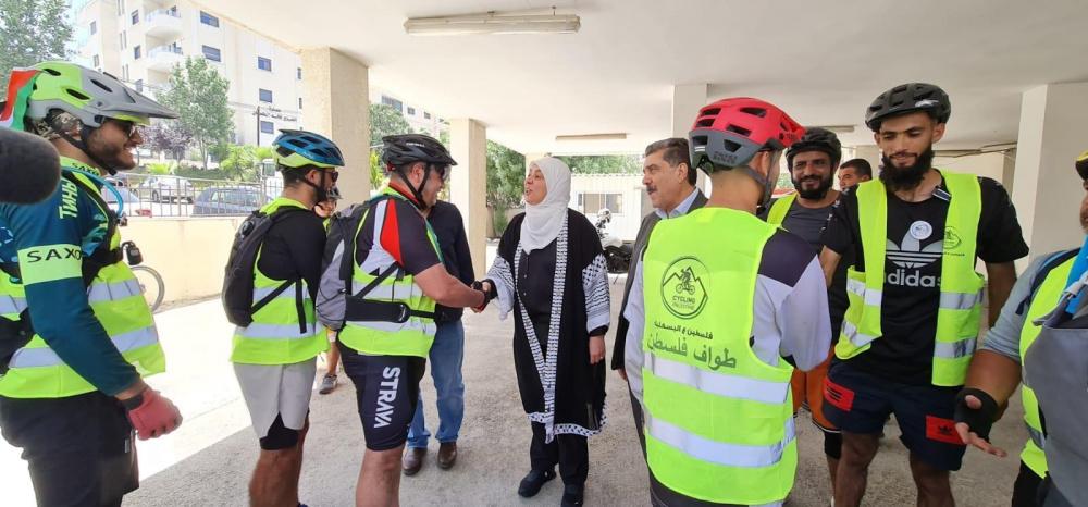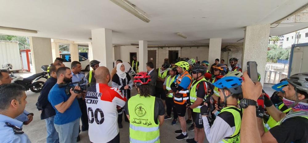 وكان في استقبال أعضاء الفريق محافظ رام الله والبيرة ليلى غنام، بحضور رئيس اتحاد الدراجات الهوائية، وكيل وزارة الداخلية يوسف حرب، وكان قد انطلق من محافظة جنين، تحت شعار: "فلسطين ع "البسكليت" من شمالها إلى جنوبها"، بمشاركة 40 دراجا من عدة محافظات.