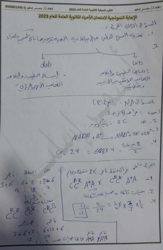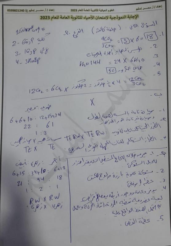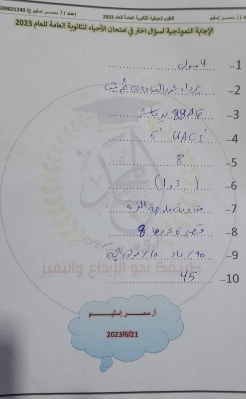 اجابات امتحان العلوم الحياتية الأحياء توجيهي فلسطين 2023 العلمي