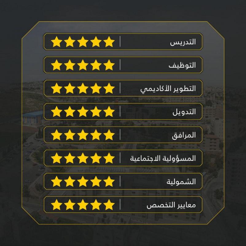 جامعة القدس تحصد تصنيف 5 نجوم في كافة مؤشرات QS العالمية