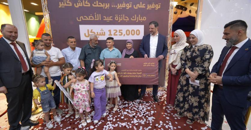 أعلن مصرف الصفا الإسلامي عن تسليم الجائزة النقدية الشهرية للرابحة عيشه يوسف داود دار خليل، ضمن حملة حساب التوفير لهذا العام، والتي شملت جوائز مميزة خاصة بشهر رمضان والأعياد. وقد بلغت قيمة الجائزة الشهرية لشهر حزيران 125,000 شيكل، وهي خاصة بعيد الأضحى المبارك وأعلى من الجائزة الشهرية للحملة وهي 100,000 شيكل على مدار العام.