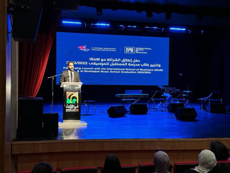 احتفلت مدرسة المستقبل للموسيقى، يوم الخميس الماضي بإطلاق شراكتها مع ISoM (International School of Musicians) - المملكة المتحدة، في المسرح البلدي، دار بلدية رام الله، في احتفال تخلله عرض موسيقي لأساتذة مدرسة المستقبل للموسيقى، واستعراض لمواهب طلبة المدرسة.