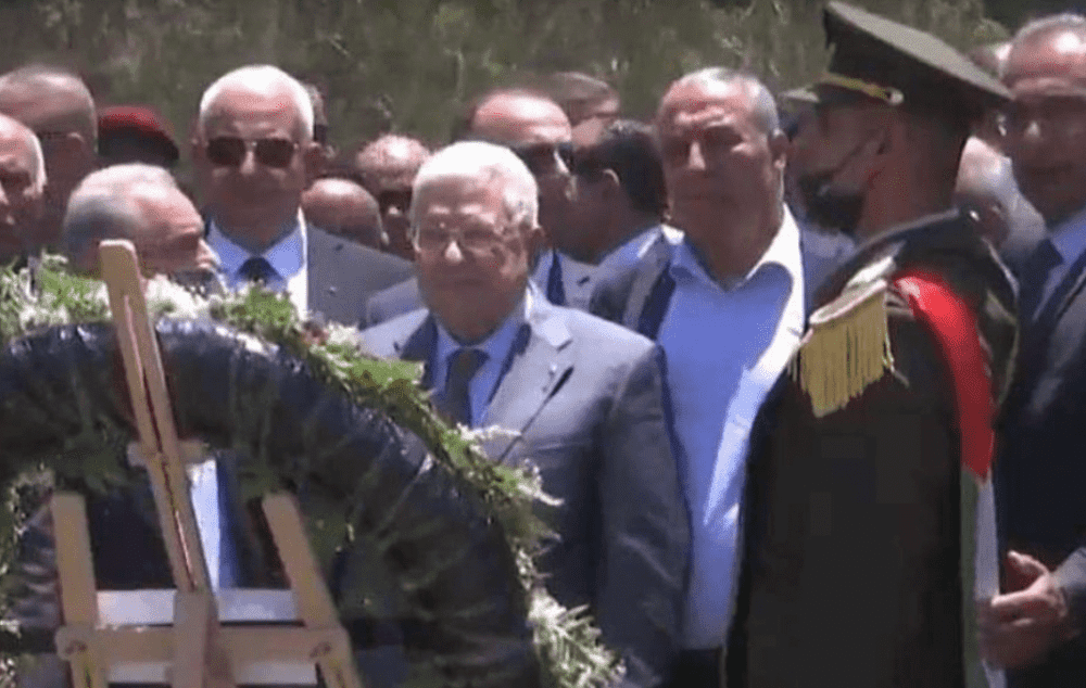 ووضع الرئيس إكليلا من الزهور على أضرحة الشهداء في مقبرة الشهداء الجديدة بمخيم جنين.