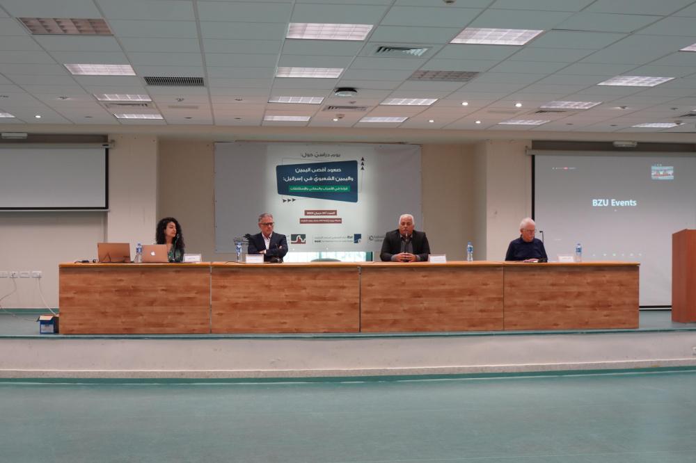 عقد برنامج ماجستير الدراسات الإسرائيلية في جامعة بيرزيت، وبالشراكة مع المركز الفلسطيني للدراسات الإسرائيلية-” مدار"، و"مؤسسة الدراسات الفلسطينية"، والمركز العربي للدراسات الاجتماعية التطبيقية-” مدى الكرمل"، يوماً دراسيًا بعنوان "صعود أقصى اليمين واليمين الشعبوي في إسرائيل: قراءة في الأسباب والمعاني والاسقاطات".