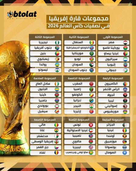 نتيجة قرعة تصفيات إفريقيا المؤهلة لمونديال 2026