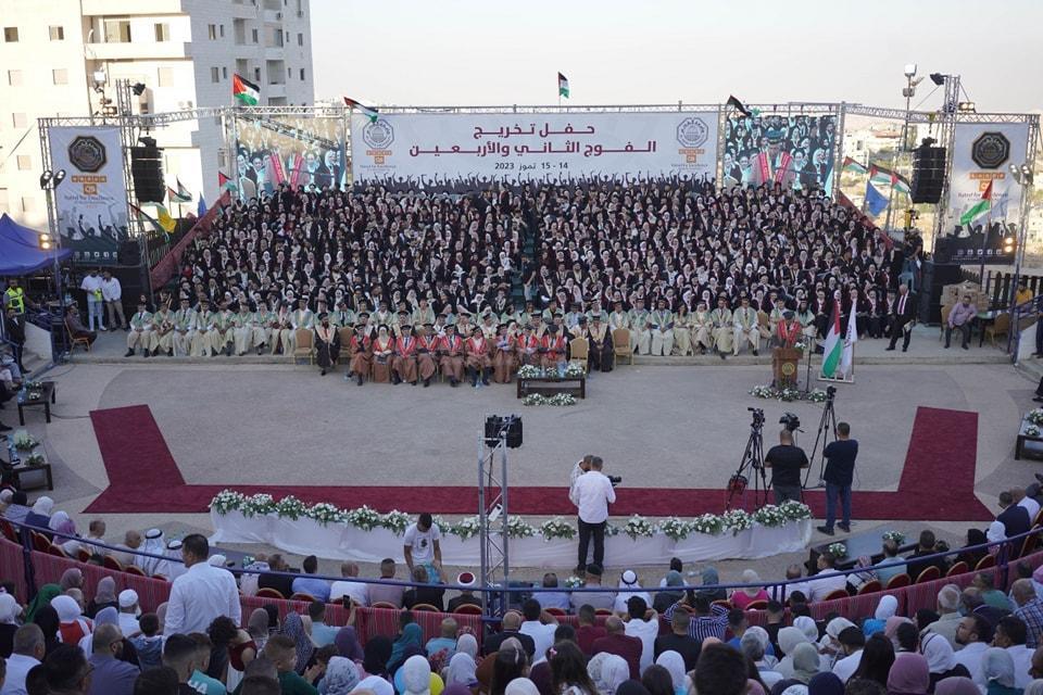 اختتمت جامعة القدس مراسم حفل تخريج الفوج (42) وطلبة الدفعة الثانية في كليات: المهن الصحية، الصحة العامة، الدعوة وأصول الدين، القرآن والدراسات الإسلامية، الأعمال والاقتصاد، الآداب، الحقوق، القدس بارد للآداب والعلوم، الدراسات الثنائية، الدراسات العليا، وذلك في حرمها الرئيس بحضور رئيس الجامعة أ.د. عماد أبو كشك، ووزير العدل أ.د. محمد الشلالدة، ورئيس مجلس الأمناء السيد منيب المصري، ولفيف من الشخصيات الرسمية والأكاديمية وذوي الطلبة والأسرى الخريجين.