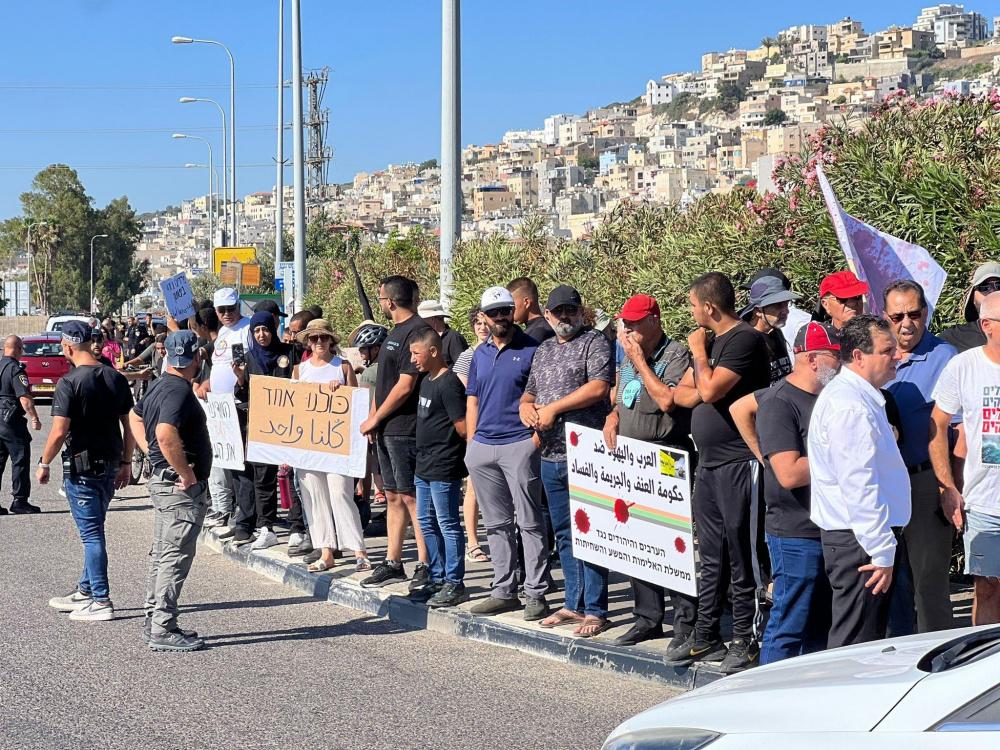 كما هتف المتظاهرون في الوقفة ضد عصابات الإجرام والشرطة المتواطئة مع الجريمة المنظمة، وفق موقع "عرب 48".