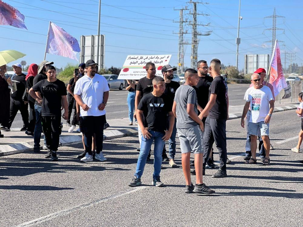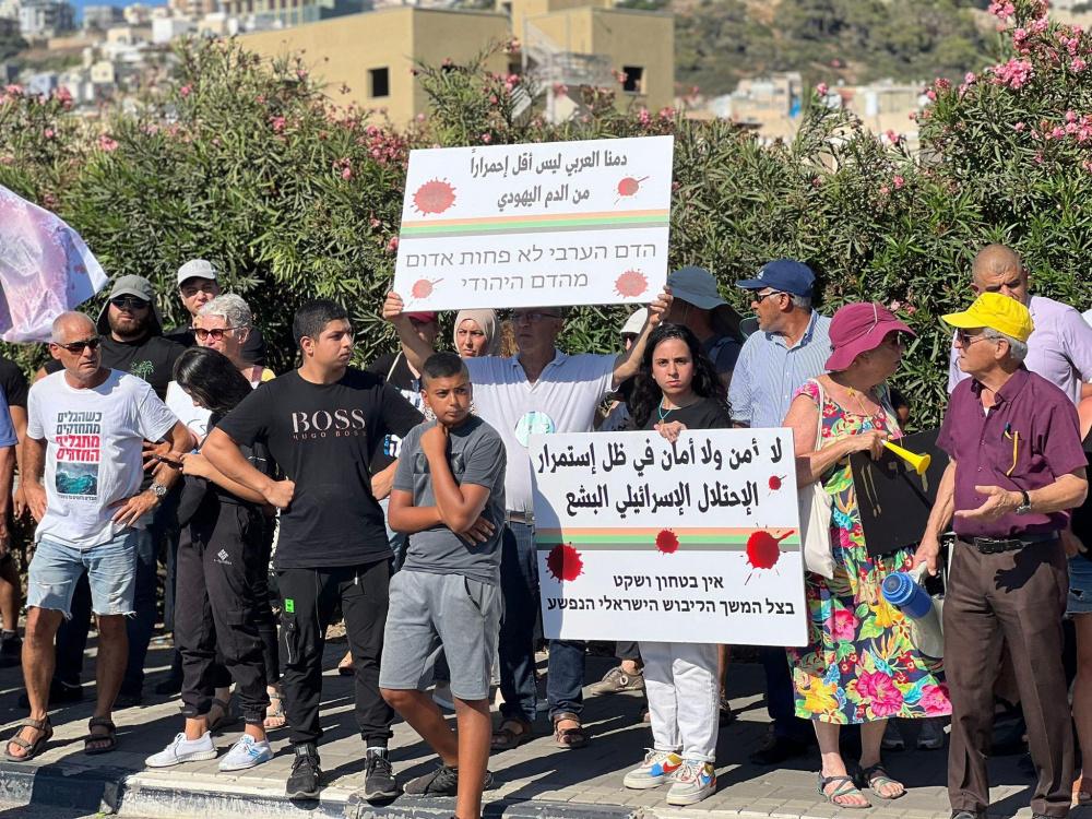ورفع المشاركون في الوقفة الأعلام السوداء واللافتات التي طالبت الشرطة بتوفير الأمن والأمان للمواطنين العرب، إذ كتب على بعض منها "الدم العربي مش رخيص"، "بدنا نعيش بأمان"، "دولة تدعم الإجرام".