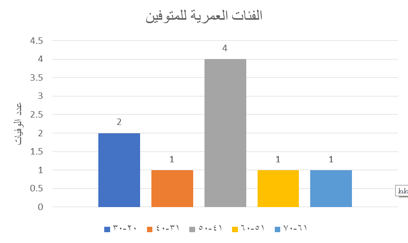 أما بالنسبة لأعمار المتوفين، فقد كانت ما بين 28-68 عاماً، ومن ناحية أخرى؛ فالنسبة الأعلى للوفيات سُجّلت لعمال تقع أعمارهم ما بين 41-50 عاماً بواقع 4 وفيات، ويليها وفاتان لعاملين في الفئة العمرية من 20-30 عاماً.
