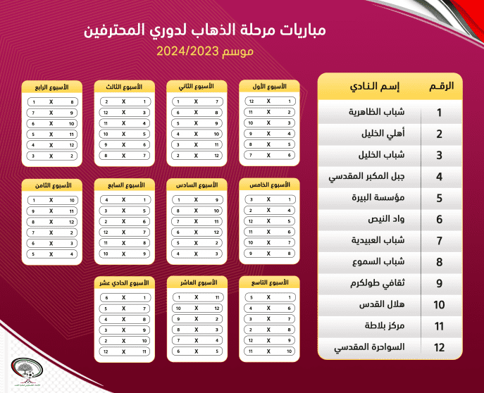 سحب الاتحاد الفلسطيني لكرة القدم قرعة دوري المحترفين، والاحتراف الجزئي، ونصف نهائي كأس الشهيد أبو عمار، وذلك للموسم الجديد 2023/2024، في مقر الاتحاد بضاحية الرام.