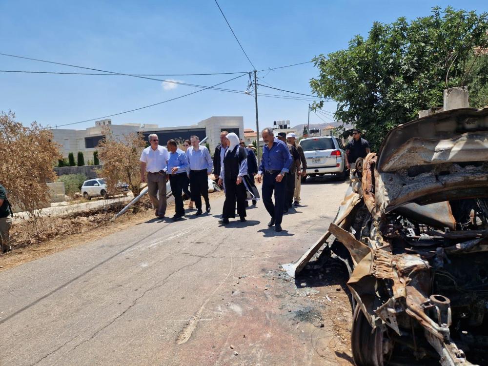 زار نائب مساعد وزير الخارجية الأمريكيي للشؤون الفلسطينية الإسرائيلية، أندرو ميلر، ومحافظ رام الله والبيرة د.ليلى غنام، اليوم الثلاثاء بلدتي ترمسعيا وسنجل وذلك للاطلاع على آثار الاعتداءات التي ارتكبها مستوطنون بحماية جيس الاحتلال بحق المواطنين المدنيين وممتلكاتهم في البلدتين.