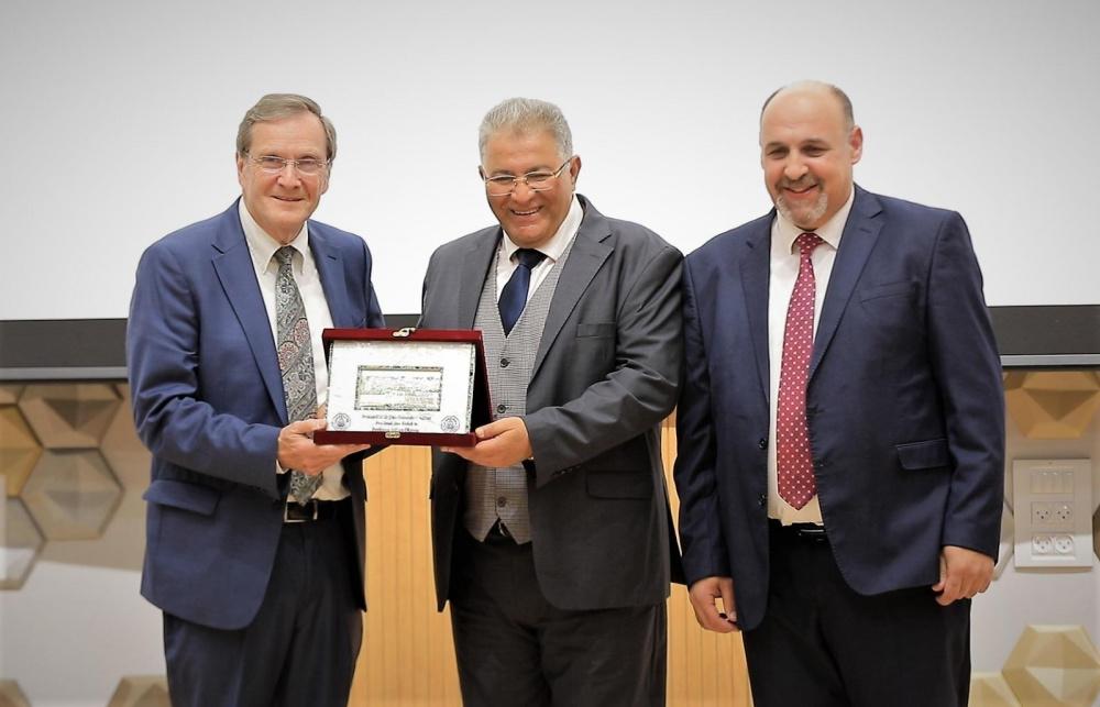 استقبل رئيس جامعة القدس أ.د. عماد أبو كشك المحاضر العالمي والمختص في أمراض الفكين البروفيسور جيفري أوكسيون، عميد كلية طب الأسنان في جامعة كنتاكي، بحيث قدم محاضرة علمية حول "أمراض المفصل الفكي الصدغي والآلام الوجهية"، بحضور متخصصين من مراكز طبية وأساتذة الكلية وطلبتها.