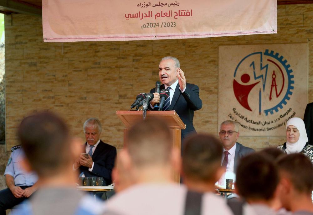 افتتح رئيس الوزراء محمد اشتية، اليوم الأحد، العام الدراسي الجديد 2023/2024 "عام حماية التعليم" من مدرسة دير دبوان الصناعية، شرق رام الله، بحضور محافظ رام الله والبيرة ليلى غنام، ووزير التربية والتعليم مروان عورتاني.