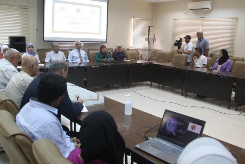 واستعرض مطر، -في الفعالية التي تولت عرافتها د. إيمان النجار، من المعهد الوطني-محاور الجائزة وموضوعها البحثي لهذا العام، وتواريخ مهمة في مسيرة الجائزة، مؤكداً أن الجائزة ستكون معلماً من معالم البحث الموجه للسياسات في الوزارة.