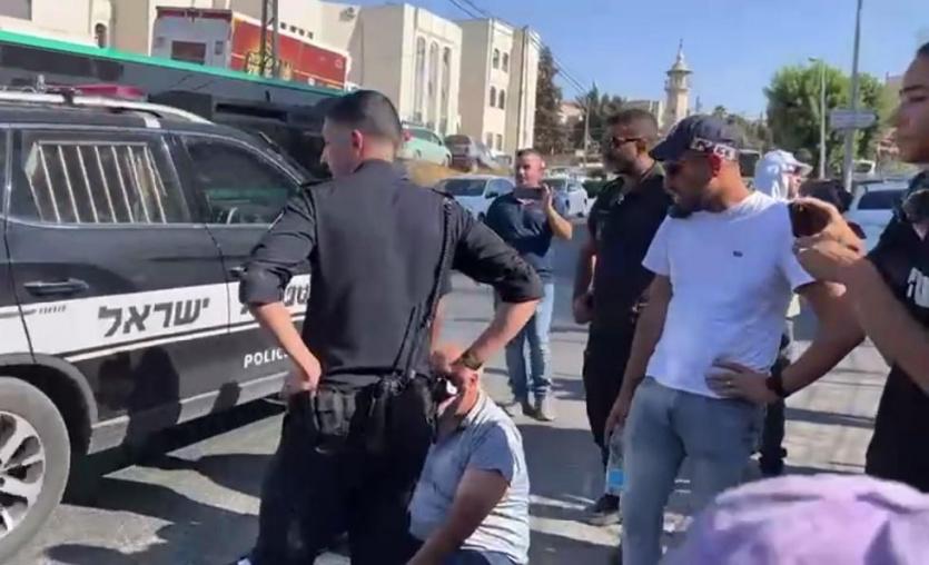 لحظة اعتداء قوات الاحتلال على الناشط المقدسي محمد أبو الحمص واعتقاله عقب رفعه العلم الفلسطيني