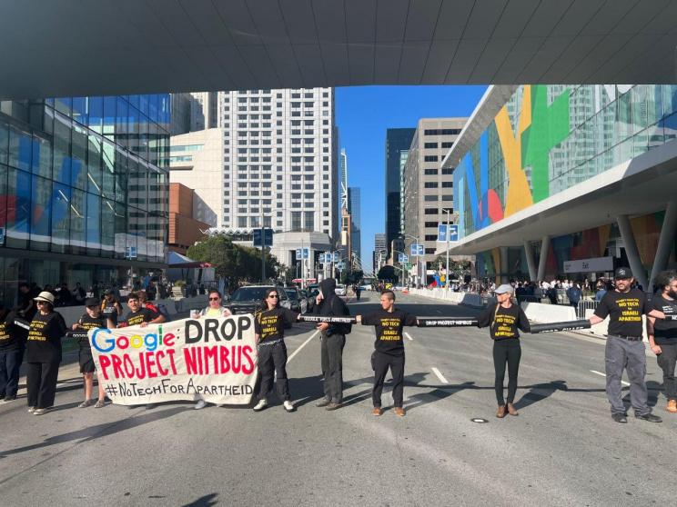 شارك المئات من موظفي شركة غوغل وأنصار الحق الفلسطيني، في تظاهرة في مدينة سان فرانسيسكو بولاية كاليفورنيا، تضامنا مع الشعب الفلسطيني واحتجاجا على انعقاد المؤتمر السنوي لتكنولوجيا الغيوم لشركة غوغل.