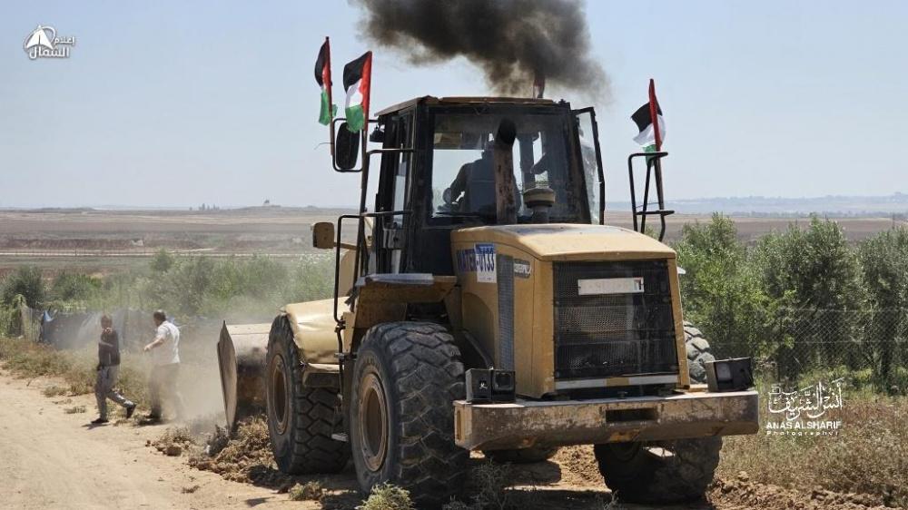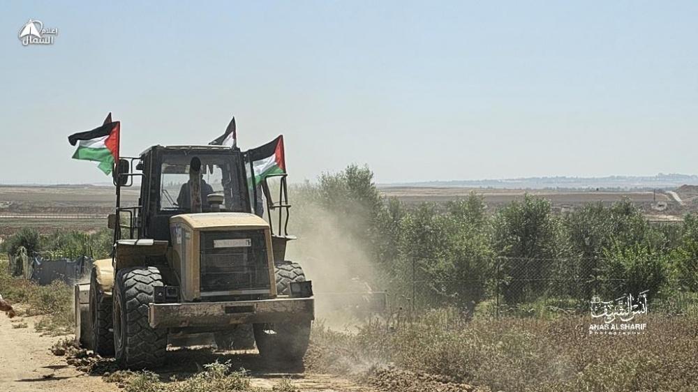 جرافة تقوم بتجهيز مخيمات العودة - تصوير: أنس الشريف
