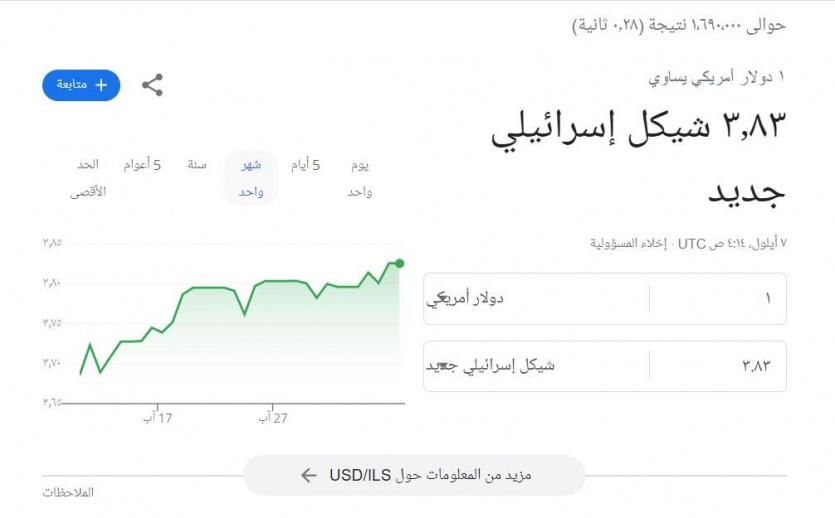 تصرف العملات مقابل الشيكل في فلسطين صباح اليوم الخميس 7 أيلول/ سبتمبر 2023 على النحو التالي: