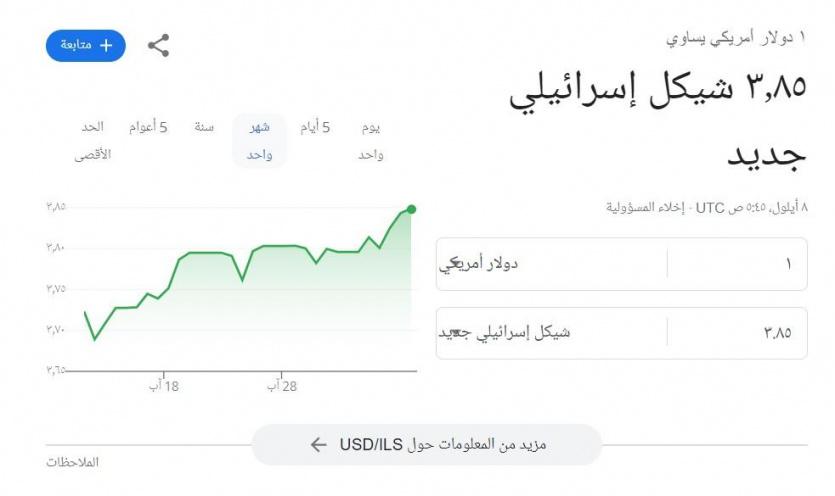 ارتفاع جديد على سعر الدولار مقابل الشيكل