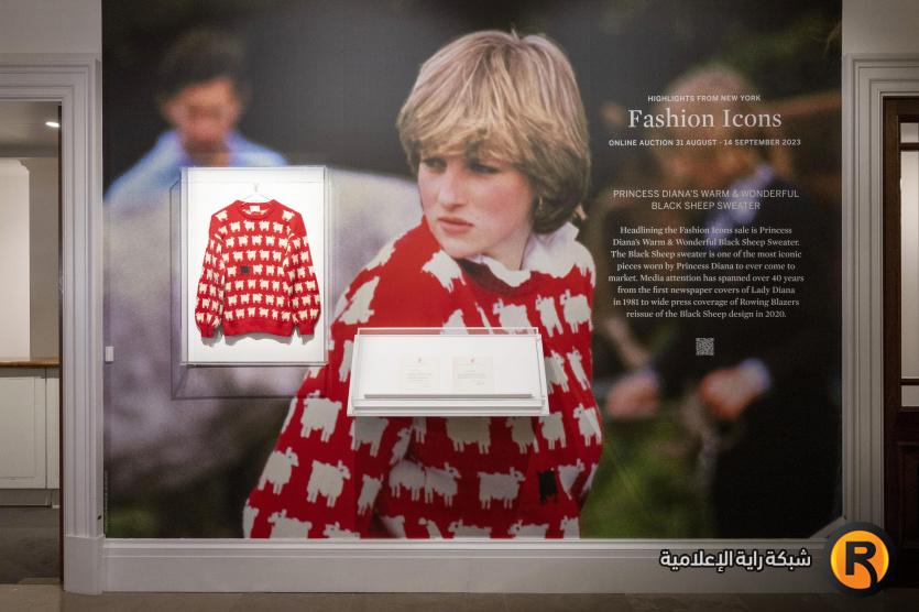 نظمت دار "سوذبيز" مزادا عبر الإنترنت لبيع كنزة من الصوف الحمراء المطبعة بخراف ارتدتها الأميرة ديانا بعد وقت قصير من خطوبتها من الأمير تشارلز، بلغ سعر الكنزة داخل المزاد 1.1 مليون دولار، يعتبر أعلى من السعر التقديري لهذه القطعة بنحو 14 مرة.