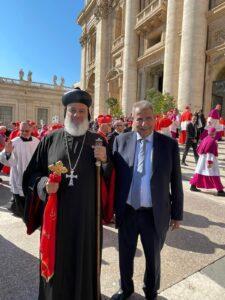 تقدم خوري ونيابة عن فخامة السيد الرئيس محمود عباس بأحر التهاني والتبريكات للكاردينال بيتسابيلا، مؤكدا استمرار العمل المشترك لخدمة الكنيسة والمجتمع والحفاظ على الوجود الفلسطيني المسيحي.