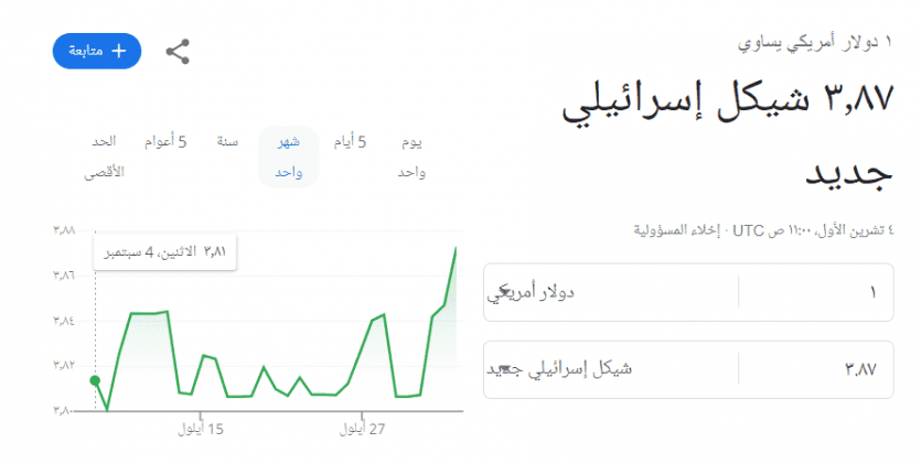 الجدير بالذكر، أن سعر صرف العملات مقابل الشيكل قبل للتغيير في أي وقت بحسب التطورات الاقتصادية والسياسية وأخبار العملات والبورصة.