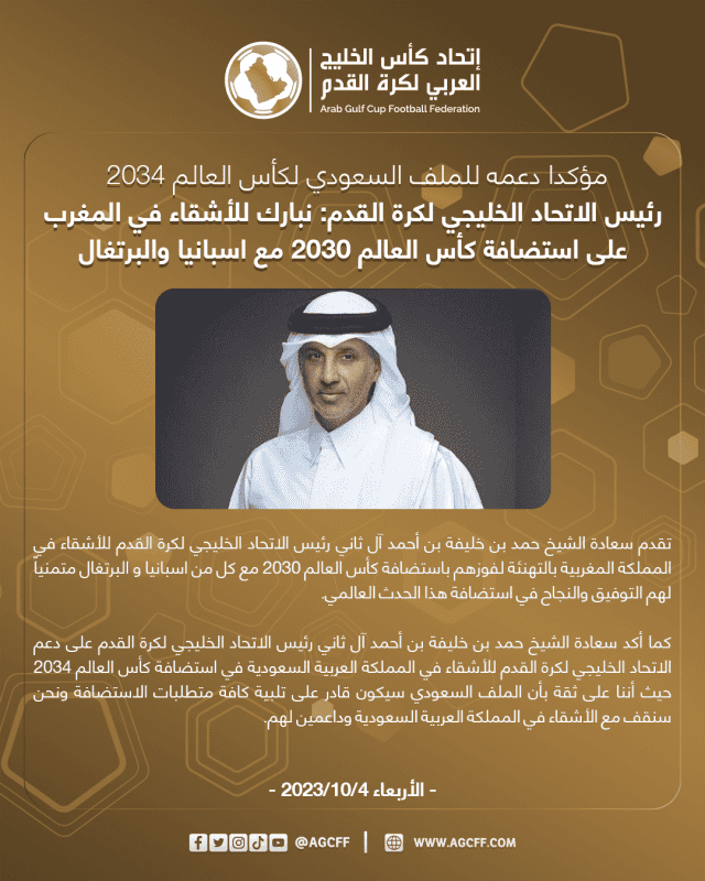 رئيس الاتحاد الخليجي لكرة القدم يبارك للمغرب استضافة كأس العالم 2030