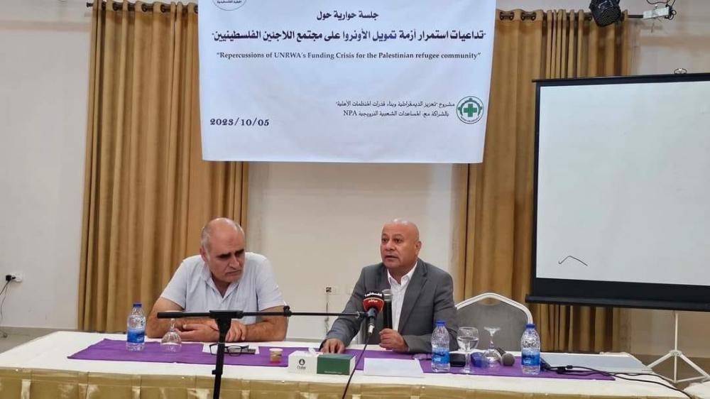 وتطرق د. أحمد أبو هولي خلال الندوة الحوارية إلى الأزمة المالية الخطيرة التي تواجهها وكالة الغوث وتأثيرها على تقديم الخدمات والمساعدات لجمهور اللاجئين خاصة في مجالات الصحة والتعليم والخدمات والمساعدات الغذائية ،متسائلا تصوروا لو توقفت هذه الخدمات ماذا سينجم عن ذلك ؟؟