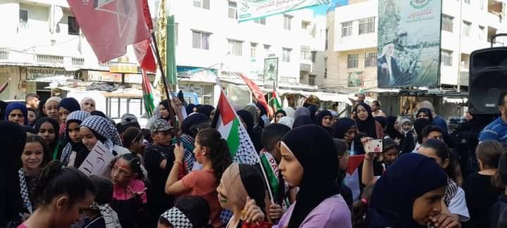 شارك في المسيرة ممثلو الفصائل الفلسطينية واللجنة الشعبية والهيئات النسائية والمؤسسات الاجتماعية والتربوية وحشد نسائي واسع .