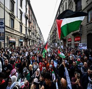 الآلاف يتظاهرون في ميلان دعما لفلسطين ورفضا للعدوان على قطاع غزة