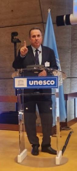 جاء ذلك في كلمة حظيت بتفاعل كبير من الحضور، والتي ألقاها باسم دولة فلسطين نيابة عن وزير التربية والتعليم والتعليم العالي والبحث العلمي أ.د محمود أبو مويس، مناشدا خلالها الضمير العالمي والإنسانية جمعاء بالتدخل العاجل من قبل "اليونسكو" للاضطلاع بمسؤولياتها في حماية المنظومة التربوية والتراث الإنساني في غزة وكافة الأراضي الفلسطينية، بما يتضمنه ذلك من رصد لكافة الانتهاكات الإسرائيلية ضمن اختصاصات المنظمة، وإرسال بعثة الرصد التفاعلي إلى غزة والقدس وكافة الأراضي الفلسطينية لرصد الانتهاكات التي ترتكبها إسرائيل القوة القائمة بالاحتلال بموجب القانون الدولي.