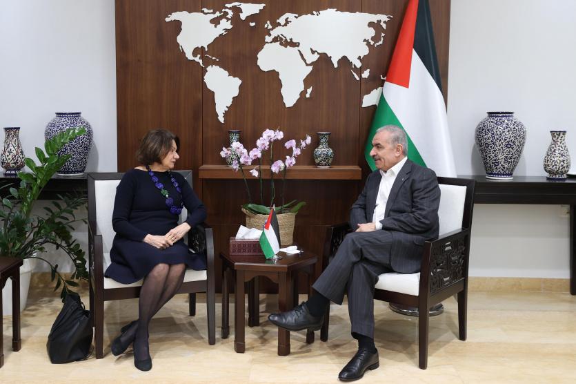وأضاف اشتية خلال لقائه وكيلة الأمين العام للأمم المتحدة للشؤون السياسية وبناء السلام روزماري ديكارلو، في مكتبه في رام الله، بحضور منسق الأمم المتحدة لعملية السلام في الشرق الأوسط تور وينسلاند، أن "إسرائيل تشن حرب إبادة على شعبنا بغزة، تستهدف الأطفال والنساء والمدنيين، وتشنها على كل موقع دون استثناء، بل تتركز على المستشفيات ومن فيها، والمدارس والمساجد، وسط حرمان الناس من الخدمات الأساسية من ماء وكهرباء وطعام ودواء".